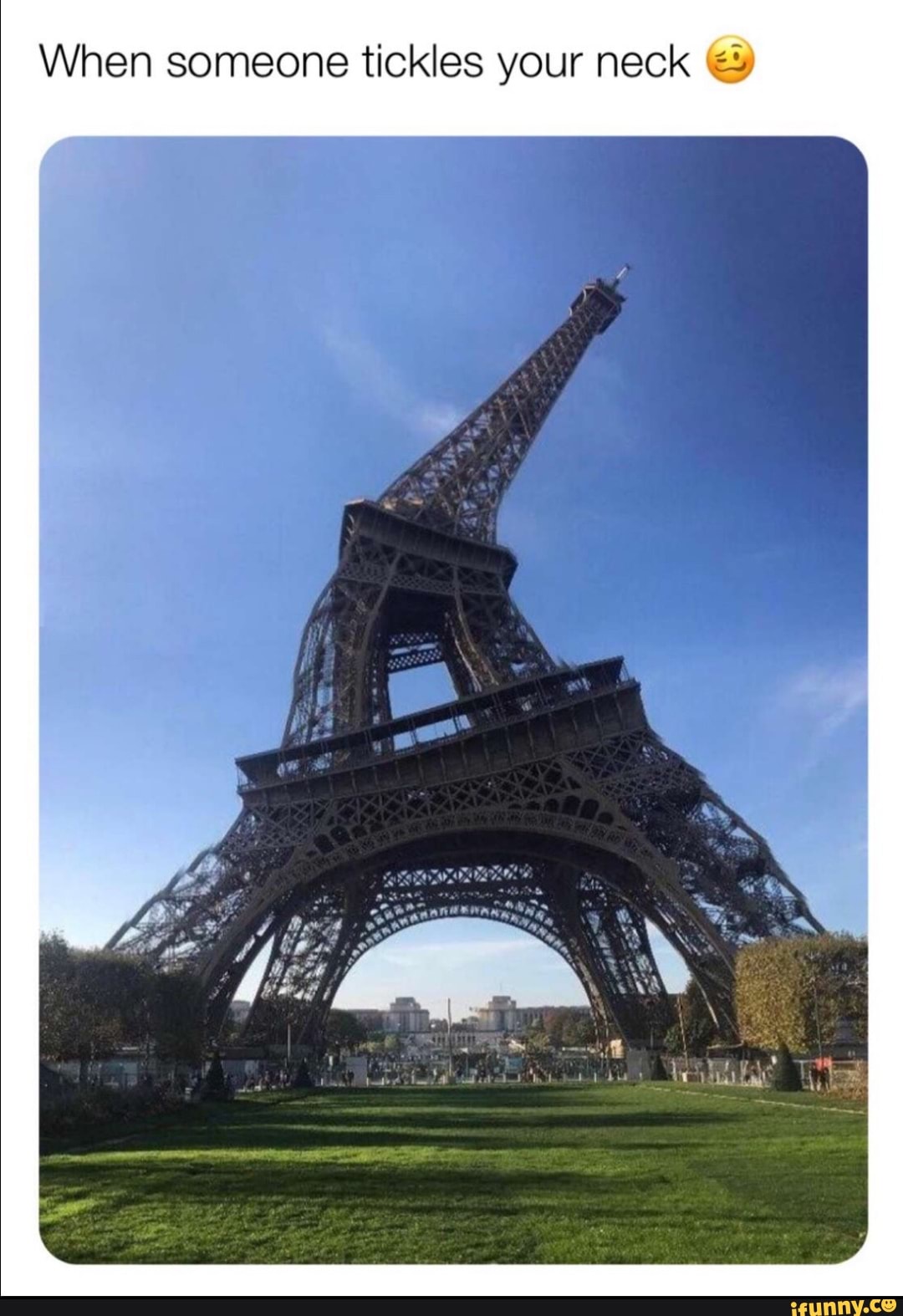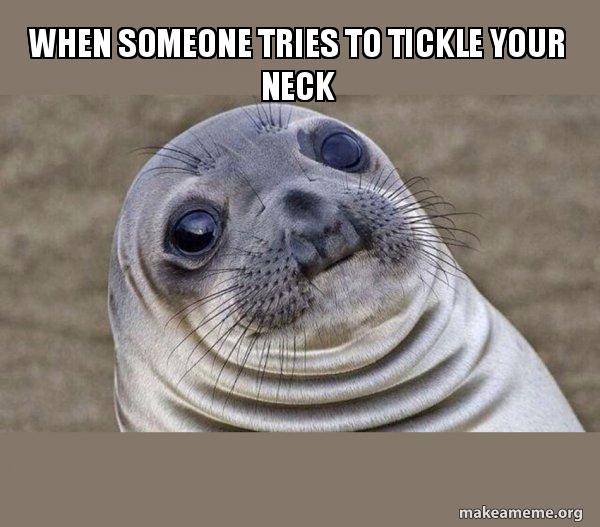 Enjoy the meme When someone tickles your neck WTF uploaded by Gtr135. Im extremely ticklish on my neck to where if someone tickles my neck or lightly touches it or even if anything brushes up against it I go into flail mode and practically punch the perpetrator. When someone tickles your neck.